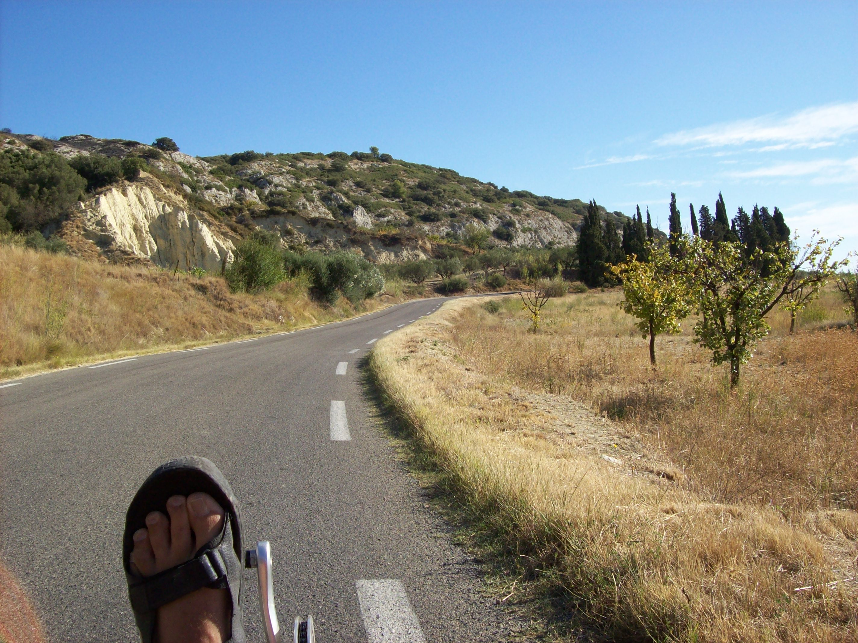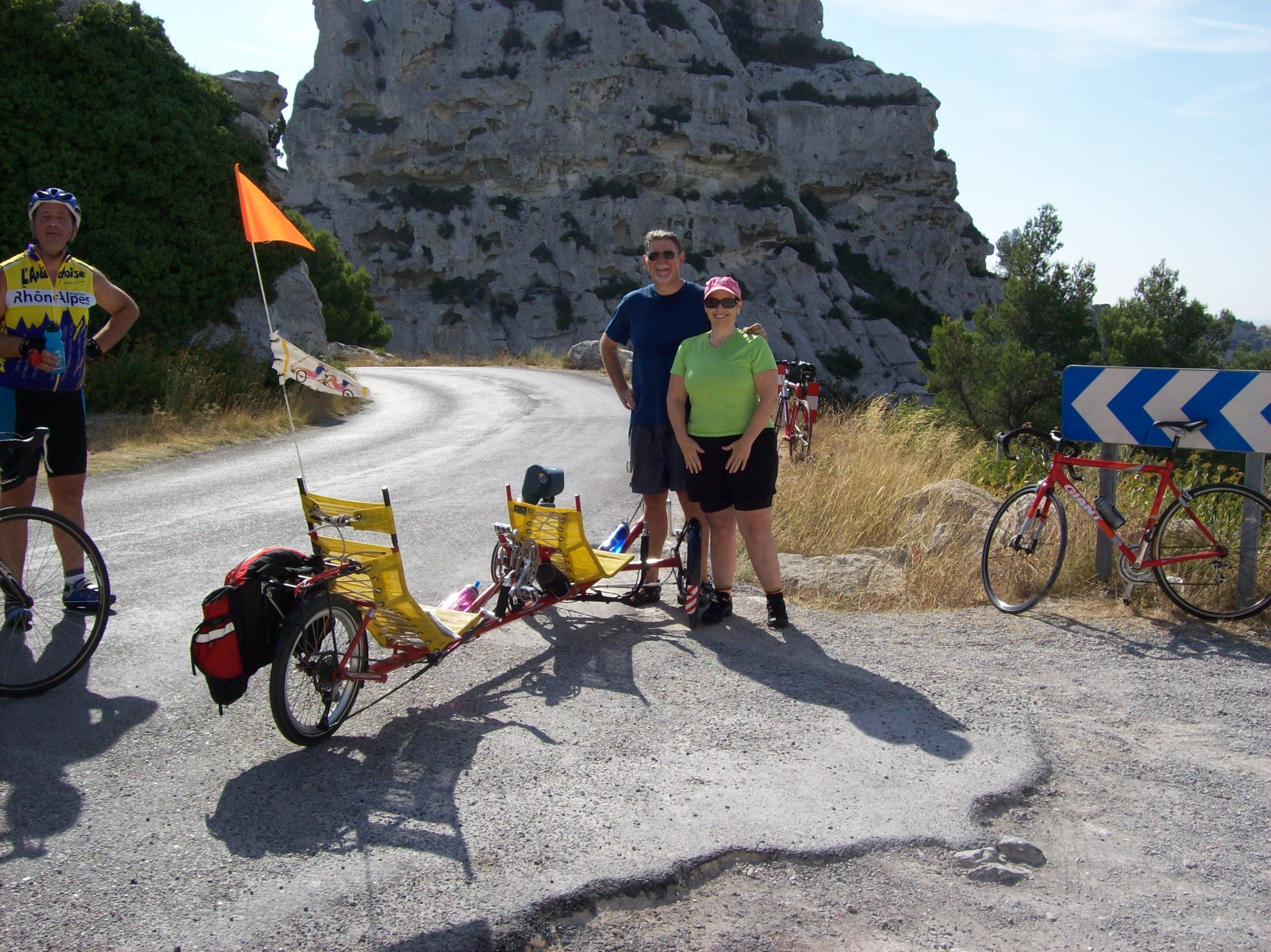 Two Weeks in Provence - the Trike Tour So, How Far Did We Ride? For the Provence portion of the tour, we cycled 295 miles. In our other travel stories, I've been diligent about logging miles each day - and I did so during this trip, in pencil, in a little blue spiral bound notebook. That stinking little notebook. All my notes... in the backpack... on the plane home... got the pencil... where's the notebook?... 2 weeks later, found under the couch. Thus a haiku: Spiral bound Log of our trip Here, then gone. Damn Ambien