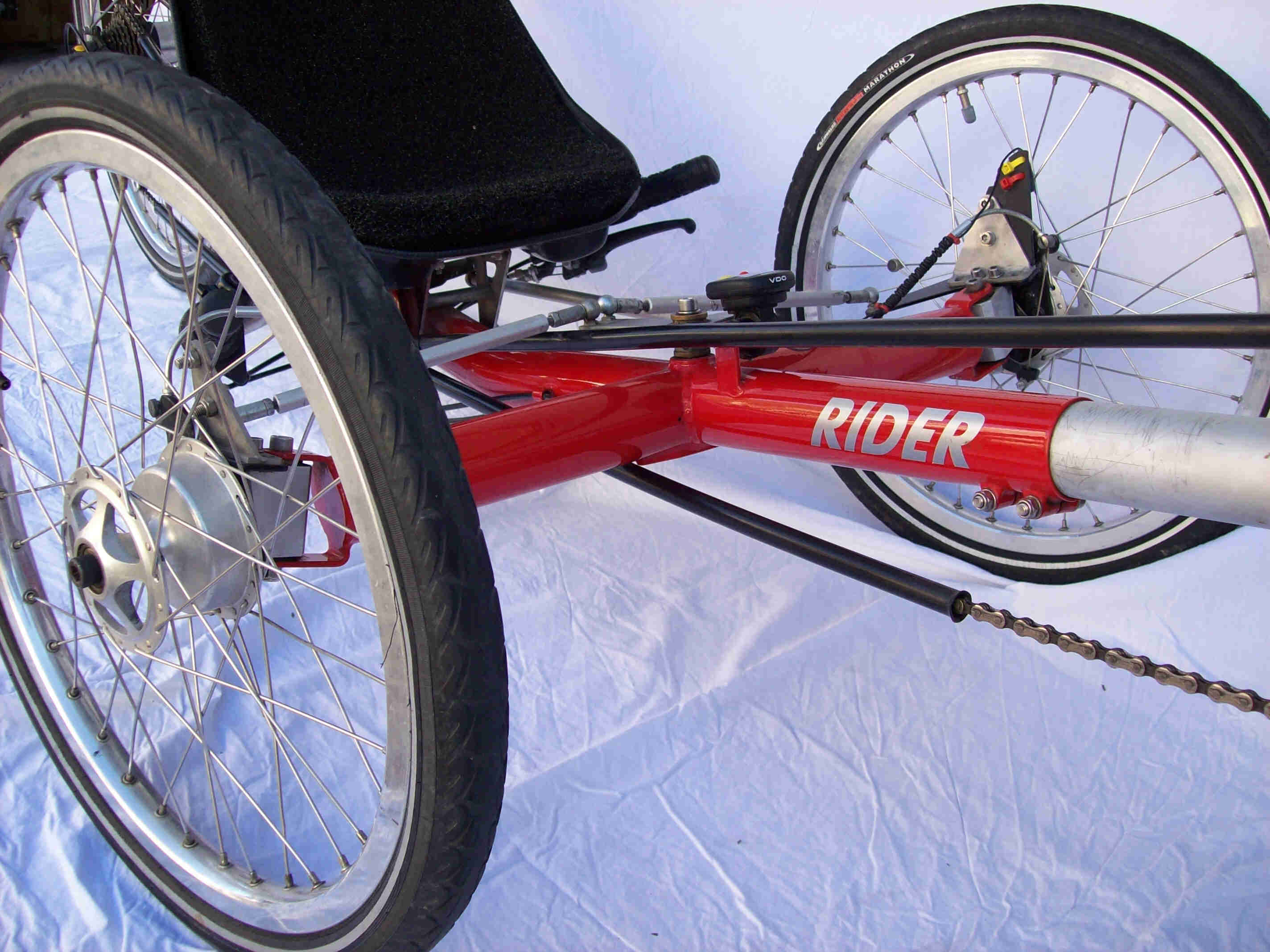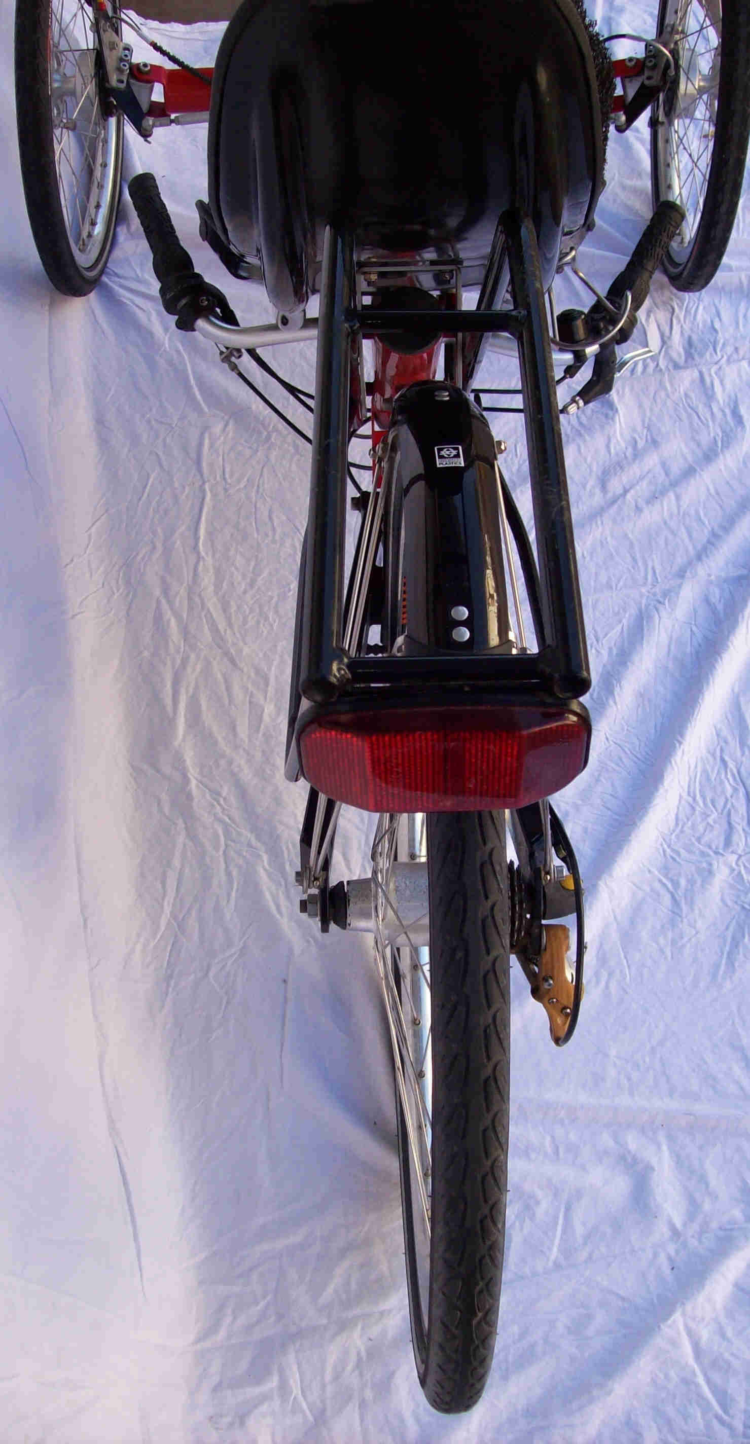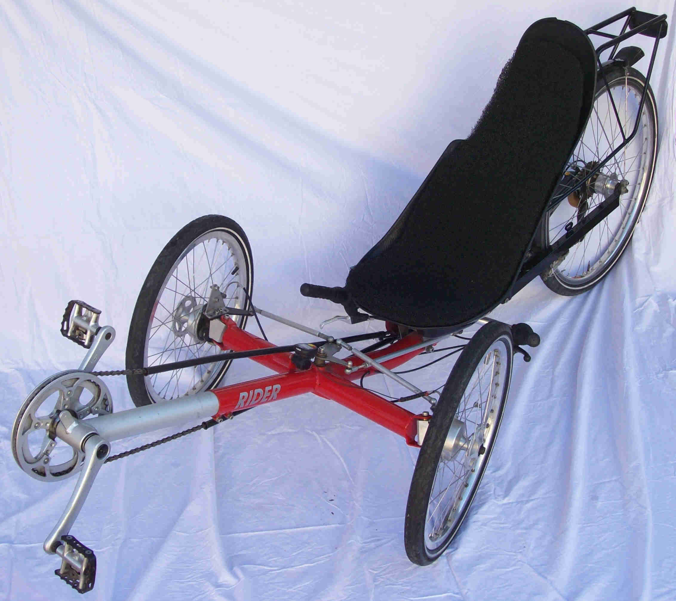 I purchased this trike in 2000 from the French distributor for Optima, toured the Loire River Valley on it, and then hauled it home. In the ensuing years, I've put around 3000 miles on it, finally got the tires aligned (see the Trike Updates below - I've learned a lot more over the years), then bought more trikes (yes, it is a sickness). Jayne says I can't buy another bike until I sell one, so, somebody has to go. This Rider is the City model, but varied somewhat from the